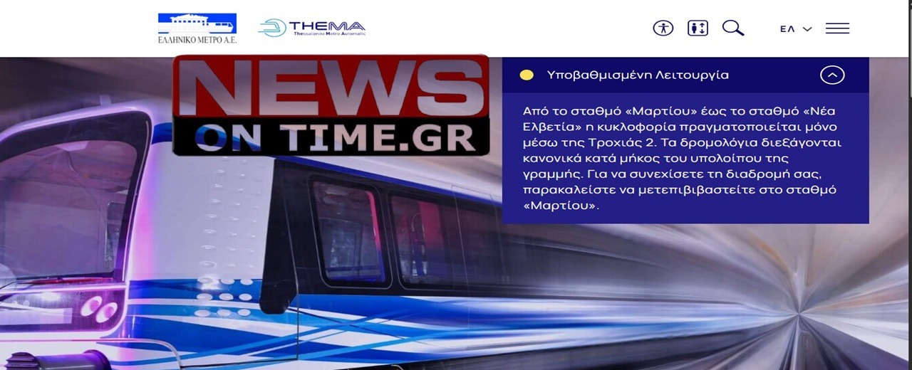 εχνικό πρόβλημα παρουσιάστηκε στο μετρό Θεσσαλονίκης, το πρωί της Μεγάλης Πέμπτης, όταν συρμός που βρισκόταν κοντά στο σταθμό Νέας Ελβετίας, ακινητοποιήθηκε. Τα δρομολόγια από Μαρτίου…