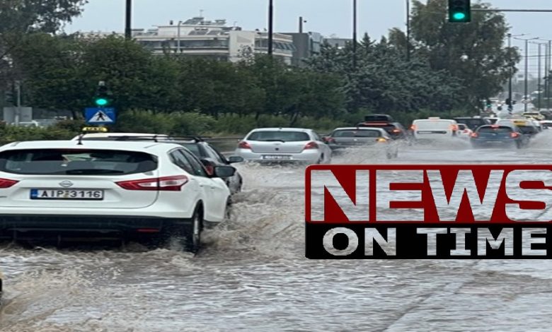Ο δρόμος πλημμύρισε και στο ύψος της Γλυφάδας δημιουργήθηκε το αδιαχώρητο με την κίνηση να έχει μεγάλες καθυστερήσεις.