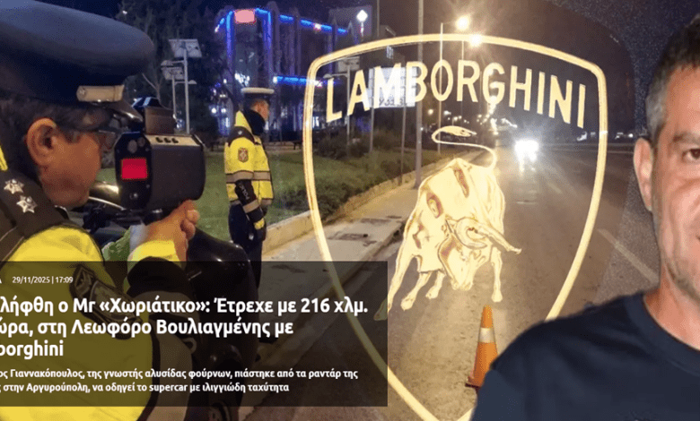 Συνελήφθη ο Mr «Χωριάτικο»: Έτρεχε με 216 χλμ. την ώρα, στη Λεωφόρο Βουλιαγμένης με Lamborghini