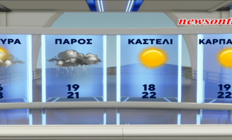 Στις Κυκλάδες και την Κρήτη, λίγες νεφώσεις πρόσκαιρα κατά τόπους αυξημένες, με πιθανότητα τοπικών βροχών μικρής διάρκειας. Οι άνεμοι δυτικοί νοτιοδυτικοί 4 με 5 μποφόρ. Η θερμοκρασία θα κυμανθεί από 16 έως 23 και στην Κρήτη έως 25 βαθμούς Κελσίου.